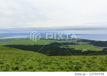【秋田県男鹿半島】男鹿半島寒風山から見た八郎潟干拓地と日本海