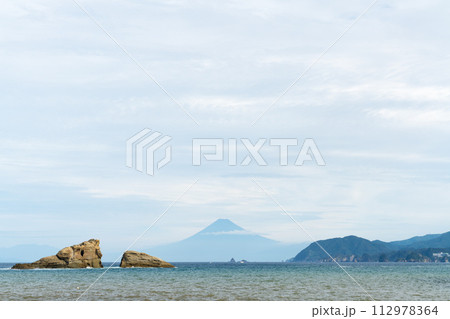 牛着岩越しから見る富士山 雲見海岸 西伊豆 松崎町