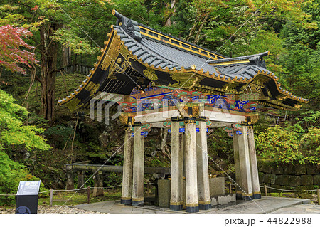 【栃木】秋の日光山輪王寺 夕暮れ時の大猷院御水舎と紅葉