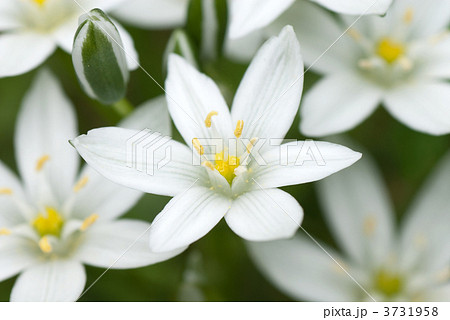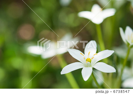 春の花畑に咲く白いオーニソガラムの花