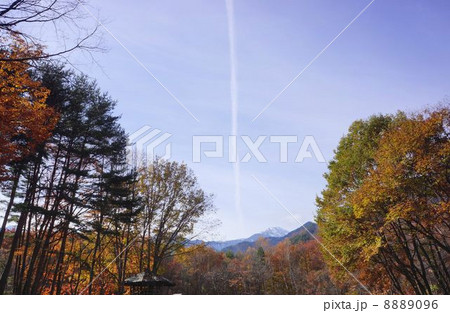 信州 大町市秋の大町温泉郷 紅葉のウオーキングコースの上原遺跡・環状列石