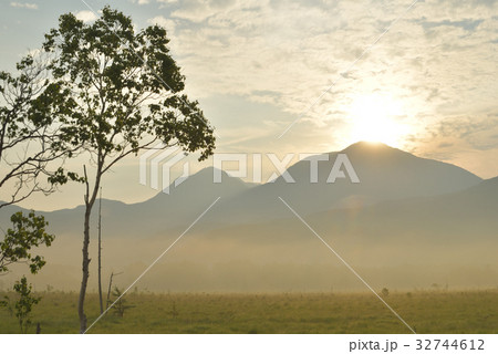 朝霧漂う夜明けの奥日光小田代ヶ原