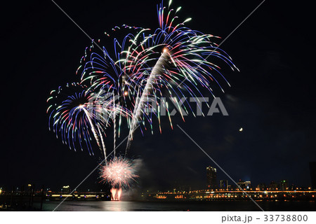 煙火 花火 煙花 夜景 月亮 五顏六色 繽紛 燦爛 慶典 慶祝 歡慶 周年慶 淡水河 大稻埕碼頭