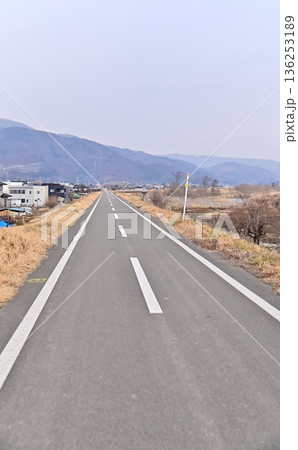 真っ直ぐに北へ向かう千曲川の堤防道路