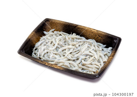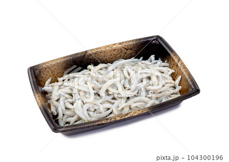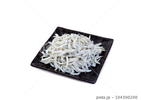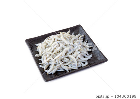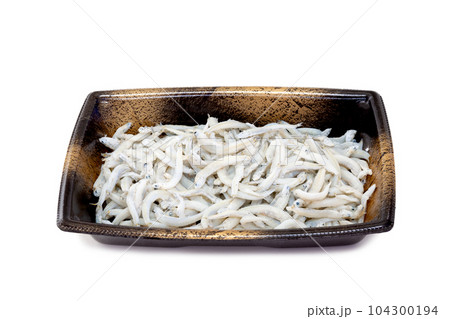 お皿に盛った大筋釜揚げしらす干し【白背景・切り抜き】