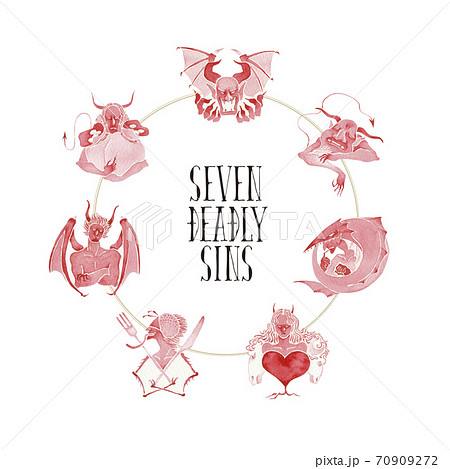 7つの大罪 罪 悪魔 アイコン セット 水彩 イラスト