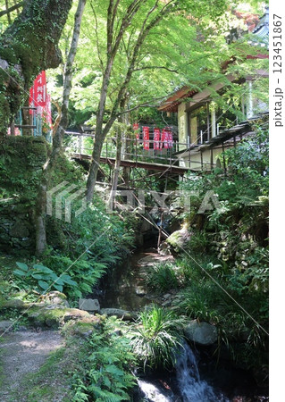 東京八王子市 初夏の高尾山6号路付近にある琵琶滝