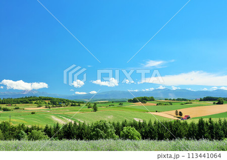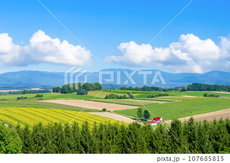 《北海道》美瑛の丘・赤い屋根の家と田園風景