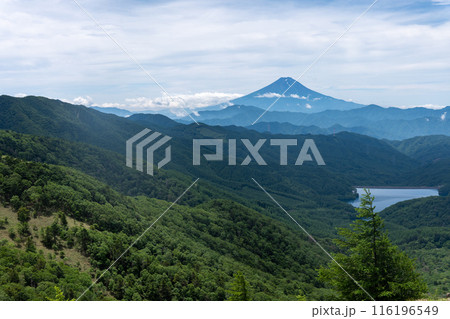 大菩薩連嶺・石丸峠付近から見る富士山と大菩薩湖