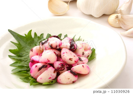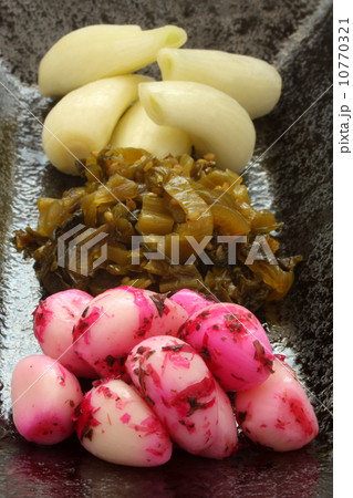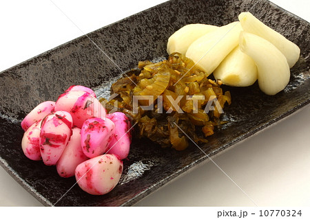 大蒜 高菜 らっきょう 漬け物 和食 白背景