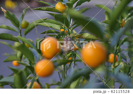 金柑の木にオオカマキリの卵