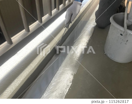 雨漏りを防ぐために修繕工事をする塔屋の平場