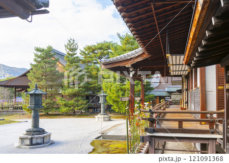 秋の京都 大覚寺 お堂エリア 回廊から見える紅葉