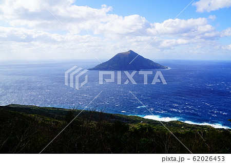 八丈島・八丈富士中腹から眺める八丈小島。東京都八丈町。2016年1月10日
