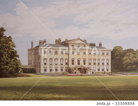 アンティーク・イラスト「イギリス貴族の邸宅」"Dytchley House"19世紀頃