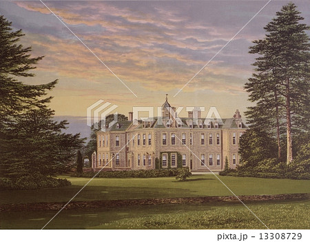 アンティーク・イラスト「イギリス貴族の邸宅」"Danesfield House"19世紀頃
