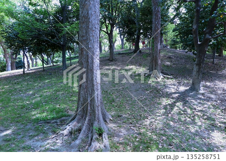 大阪市の天王寺公園、園内にある大阪五低山のひとつ「茶臼山」山頂付近の様子