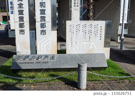 松原市役所前の応急給水栓・給水塔のある場所を道路の対面から