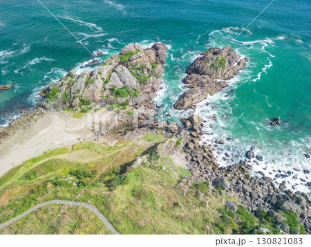 「青森県」八戸市の美しい種差海岸沿いを空撮