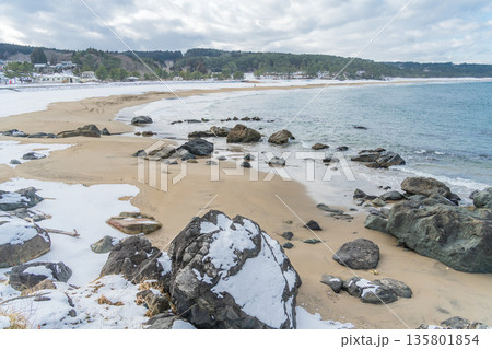「青森県」雪景色の大須賀海岸・種差海岸 八戸市