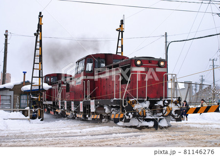 雪景色の大館に停車するキハ58系ディーゼルカー