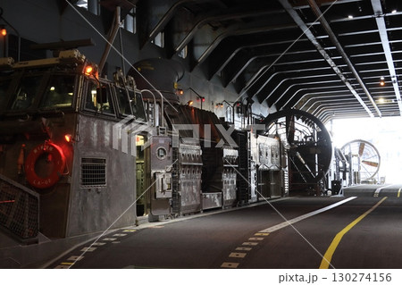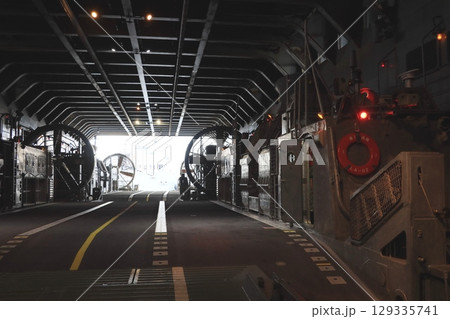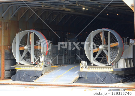 輸送艦に格納されたLCAC 海上自衛隊の輸送艦の内部