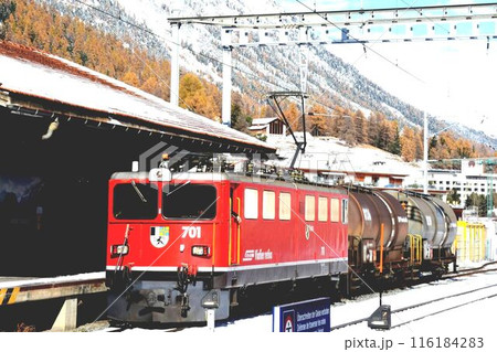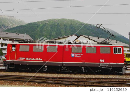 世界遺産レーティッシュ鉄道最大の6軸機関車。急カーブが多い路線に合わせて連接型になっています。