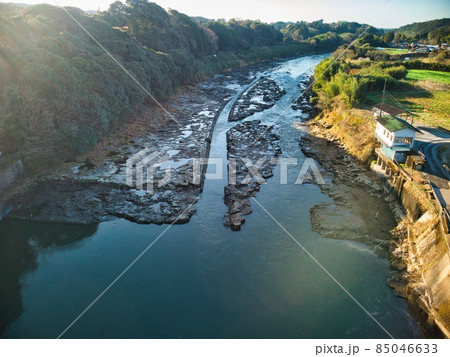 松島町高城川と街並の景色