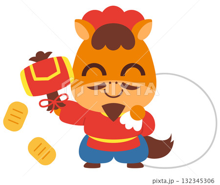 打ち出の小槌を持つ馬キャラ大黒天|財運招福の干支イラスト(2026年・午年)