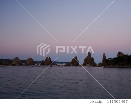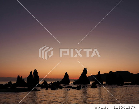 橋杭岩の夜明け、静かな海