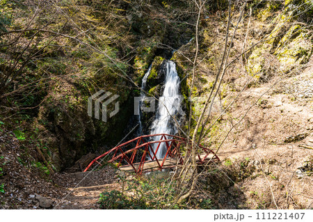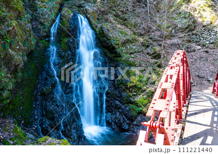 【日本の滝百選】天滝 春の鼓ヶ滝と赤い橋3 兵庫県養父市