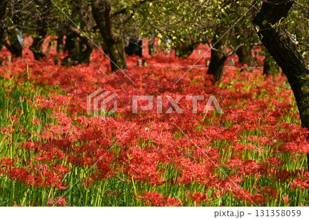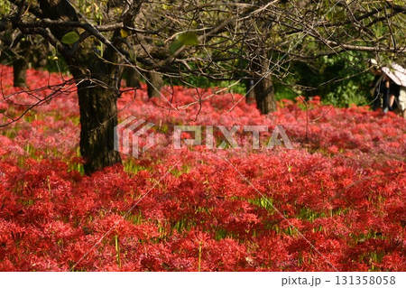 真っ赤に咲き乱れる曼珠沙華の群生、妖艶な秋の風景