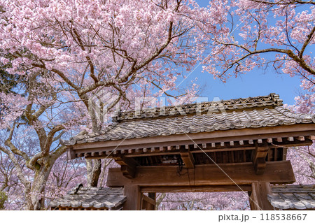 長野県伊那市 天下第一の桜と言われる高遠城址公園満開の桜と問屋門
