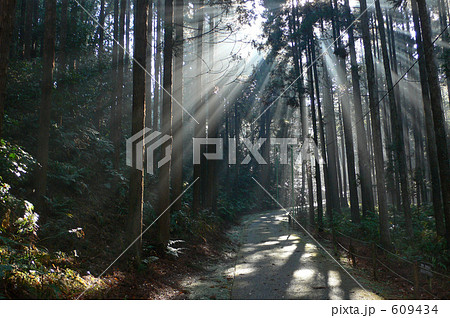 ブナ林から差し込む太陽の光芒