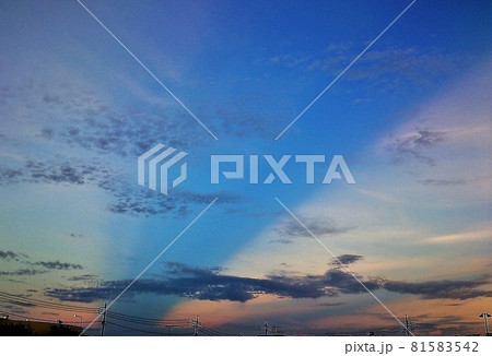 酷暑の夕刻、西の空の反薄明光線・天割れ