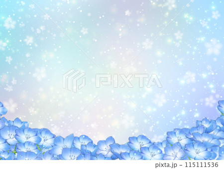 青い花の神秘的、メルヘン、幻想的なきらきら光るシンプルグラデーション背景壁紙イラストテクスチャ