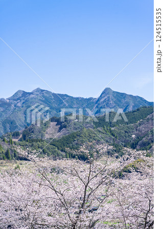 山並みを背景に桜の花「湯の温かさと桜の美しさに癒やされる」天岩戸の湯(宮崎県西臼杵郡高千穂町)