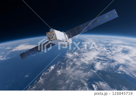 次世代の通信インフラである低軌道通信衛星をリアルに描いたAI生成画像
