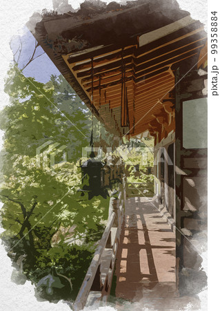 水彩画風 談山神社 神廟拝所 奈良県桜井市