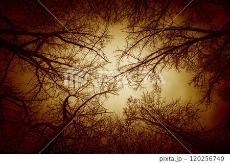Dark overcast skies and bare branches: visual metaphor for gloom