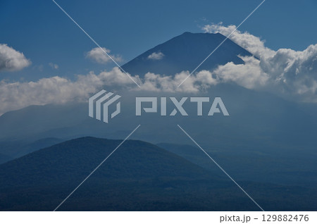御坂山地の烏帽子岳山頂からの雲わく富士山展望