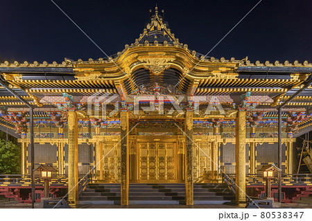 [東京・上野] 上野恩賜公園に輝くライトアップ中の上野東照宮の夜景撮影。