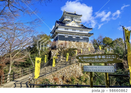 岐阜市、金華山にそびえ立つ岐阜城の模擬天守