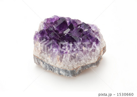 アメジストの原石のアップ(白背景)