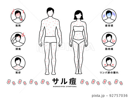 イラスト素材:サル痘 シンプルな顔と全身の症例 セット