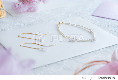 天然石のブレスレットとピアス 淡水パール ローズクオーツ プレゼントイメージ