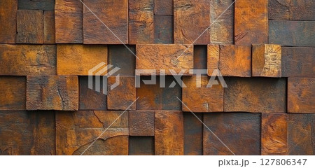 Wooden Blocks Form a Textured Wall with Rustic Charm, Decorative Panels for Interior Design Concept.