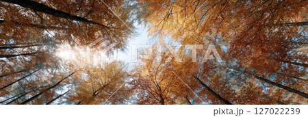 Leaves transform in vibrant hues as sunlight filters through the forest canopy on a crisp autumn day