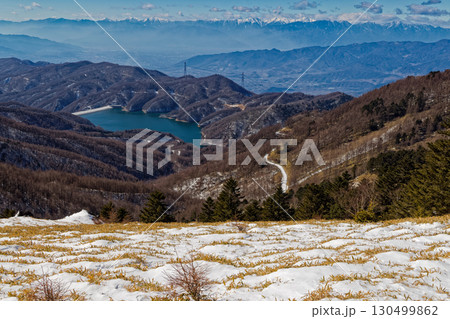 大菩薩連嶺・天狗棚山から見る大菩薩湖と南アルプスの山並み