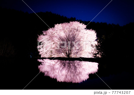 天王桜のリフレクション ライトアップ 群馬県片品村 天然記念物